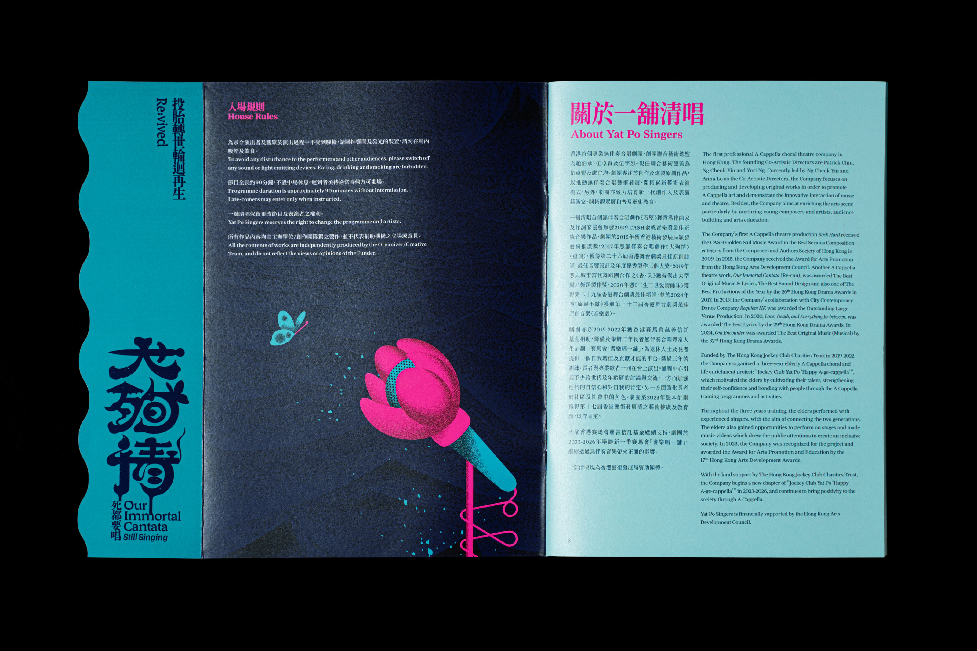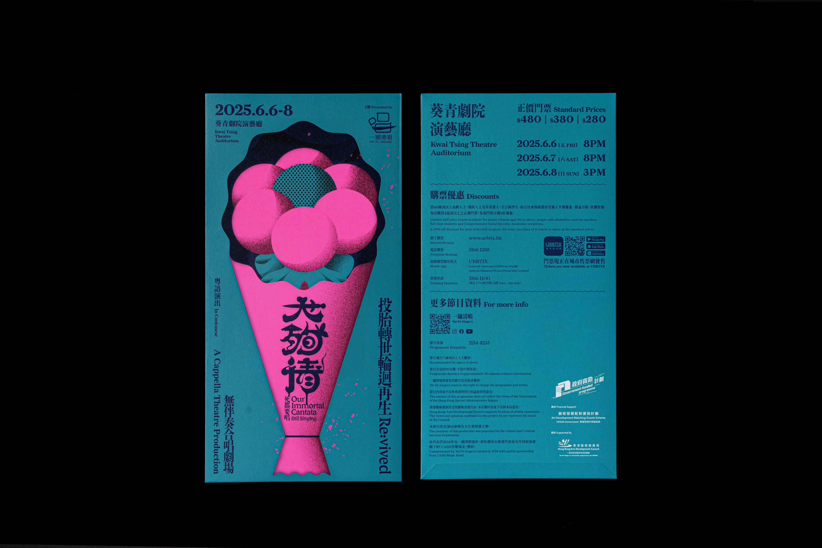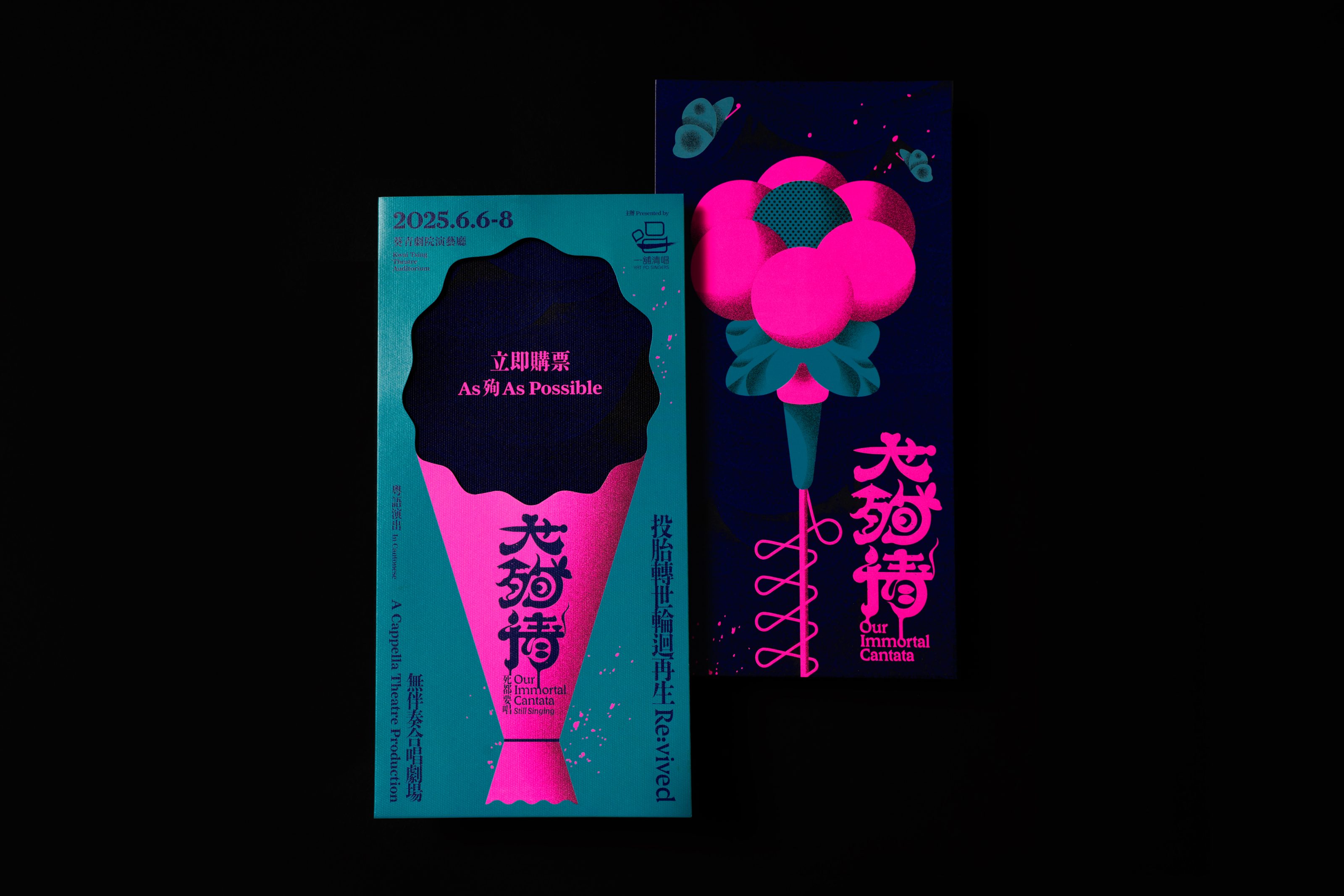 Our Immortal Cantata is a wildly theatrical a cappella contest set in the afterlife. Legendary tragic lovers—The Butterfly Lovers, Romeo & Juliet, Madame Butterfly, Princess Changping and local Hong Kong pair Yu Fa & Sub Yee Siu—compete in “The Greatest Suicide for Love,” a fierce showdown like The Voice. Through soaring song, dance, rivalries, and unshakeable faith in their romantic sacrifices, these ghostly contestants battle to claim the ultimate title: true immortality.